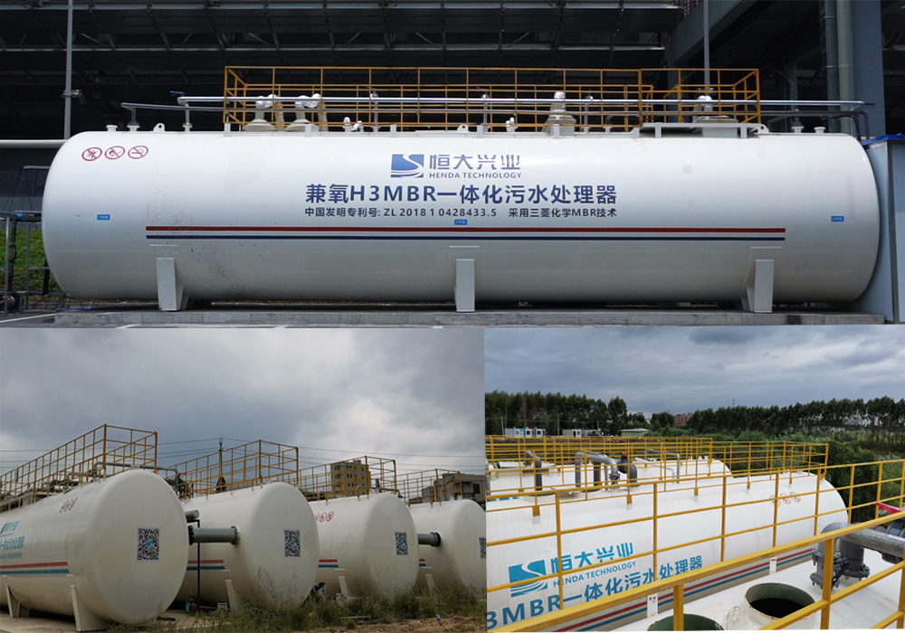 (二)由我司自主研發(fā)的智能兼氧H3MBR一體化污水處理器(中國發(fā)明專利號:ZL2018 1 0428433.5),采用三菱化學MBR膜技術(shù),結(jié)合間歇曝氣和間歇進水完成脫氮除磷,去除有機物,并通過三菱化學MBR膜組件進行泥水分離,產(chǎn)水穩(wěn)定達到一級A排放標準。主要應用于市政污水、產(chǎn)業(yè)園區(qū)污水、方艙醫(yī)院、城鎮(zhèn)新農(nóng)村生活污水等諸多場景生活污水的處理與回用。