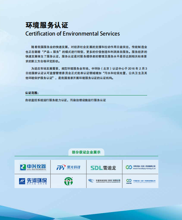 中國環(huán)境服務(wù)認證簡介